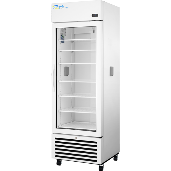True Scientific series utilizes the most advanced technologies designed specifically for pharmacy, laboratory, and clinical applications. Energy efficient refrigeration system with innovative airfow technology specifically designed to maintain cabinet temperatures between 2°C – 10°C (36°F – 50°F). Self-Cleaning condenser technology eliminates the need for cleaning the condensing coil, reduces energy consumption, and helps maintain the tightest temperatures. Energy-efficient and environmentally friendly R290 hydrocarbon refrigerant. Temperature is measured in a glycol-filled bottle which is displayed on the control to simulate actual product temperature. In the event of a high/low-temperature alarm, door opening, temperature sensor failure or power failure, an alarm will be activated, helping to prevent product loss. Built-in antimicrobial properties to protect the handle. Control has a battery back up feature and is locked at the factory to prevent inadvertent changes to the settings.